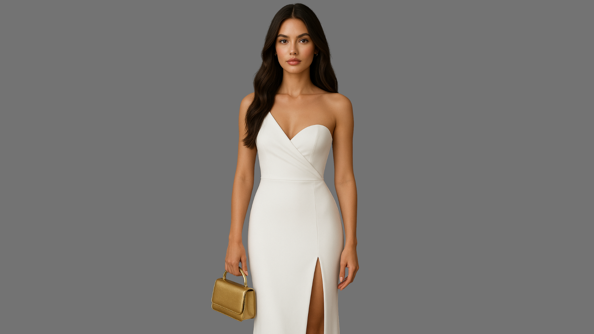 Selah - White Long Sleeve Dress with Waist Cutout and Rhinestone Accents